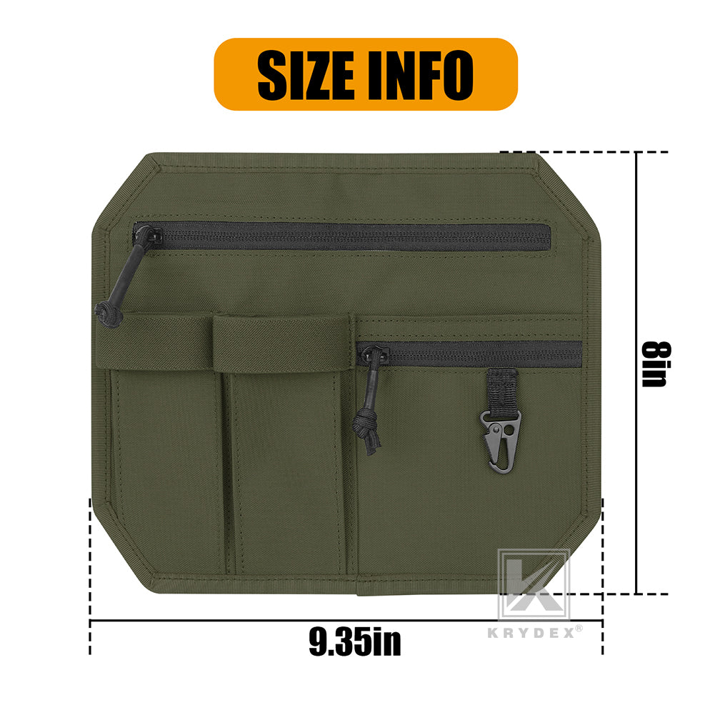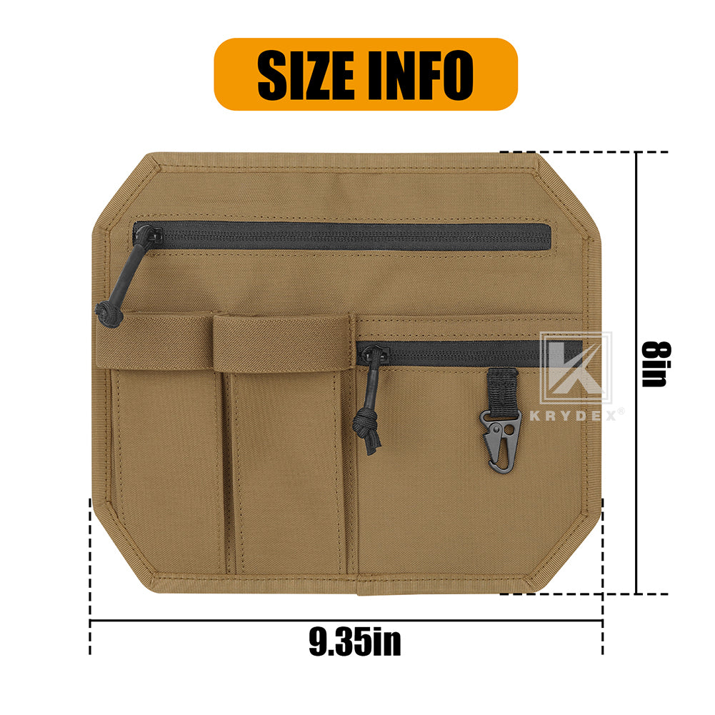 * Size: 9.5” x 8.3” * Color: MC, Black, Coyote Brown, Ranger Green. Package Contents: * Krydex Hook Backed Organizer Panel Admin Insert * 1