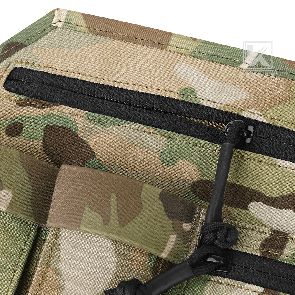 * Designed with two YKK zipper pockets to secure valuable or smaller items. Two elastic retention expandable pockets with pleats can be loading with pistol mags, tools, flashlights or other similar sized items.