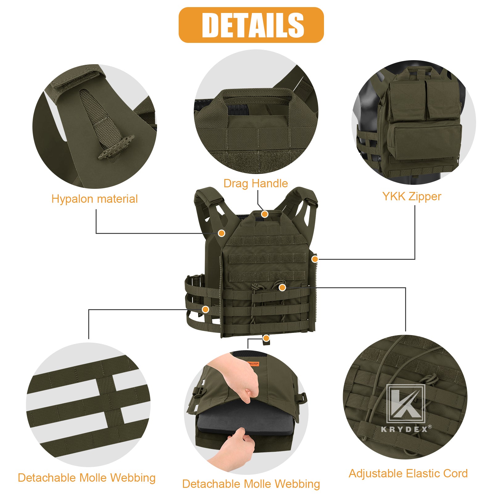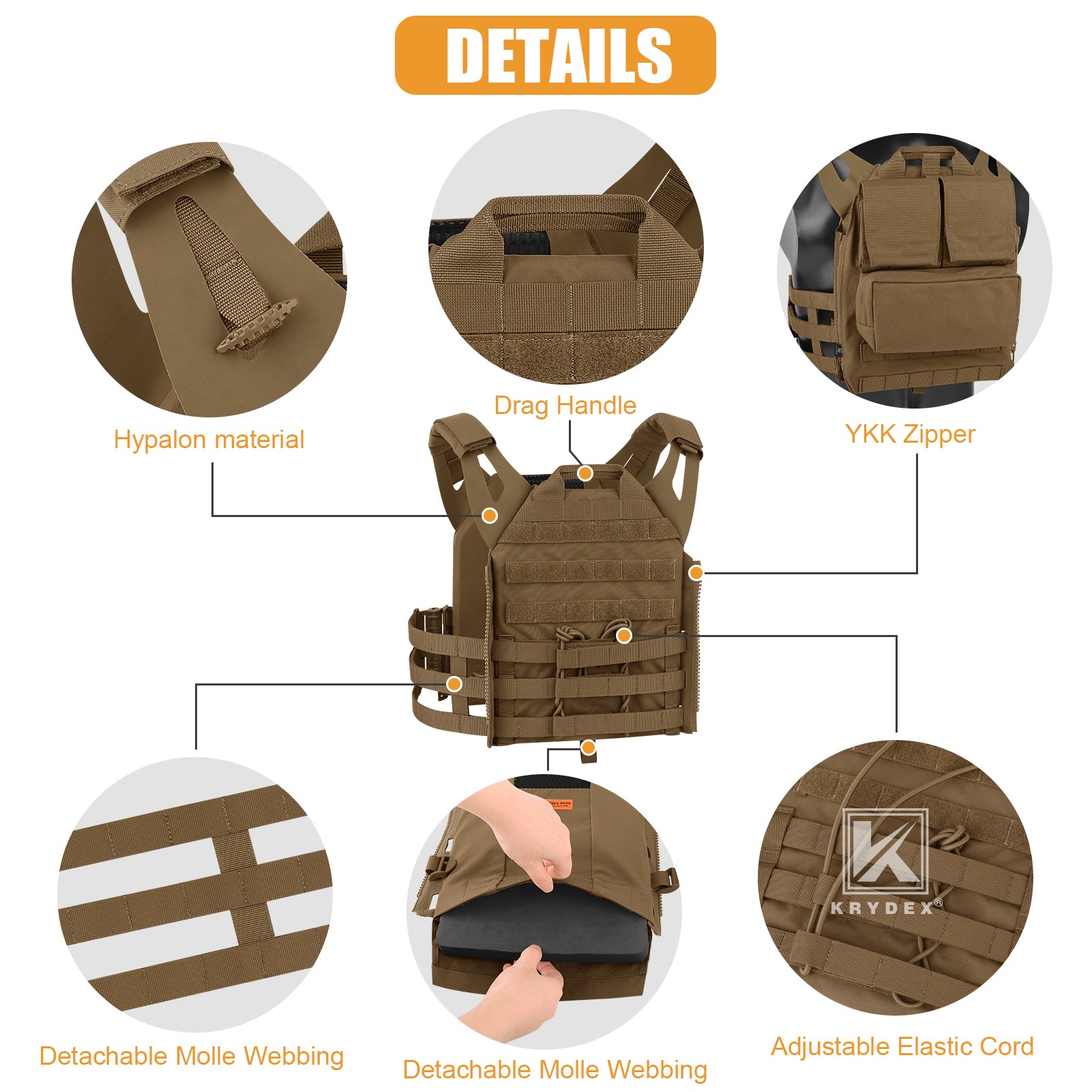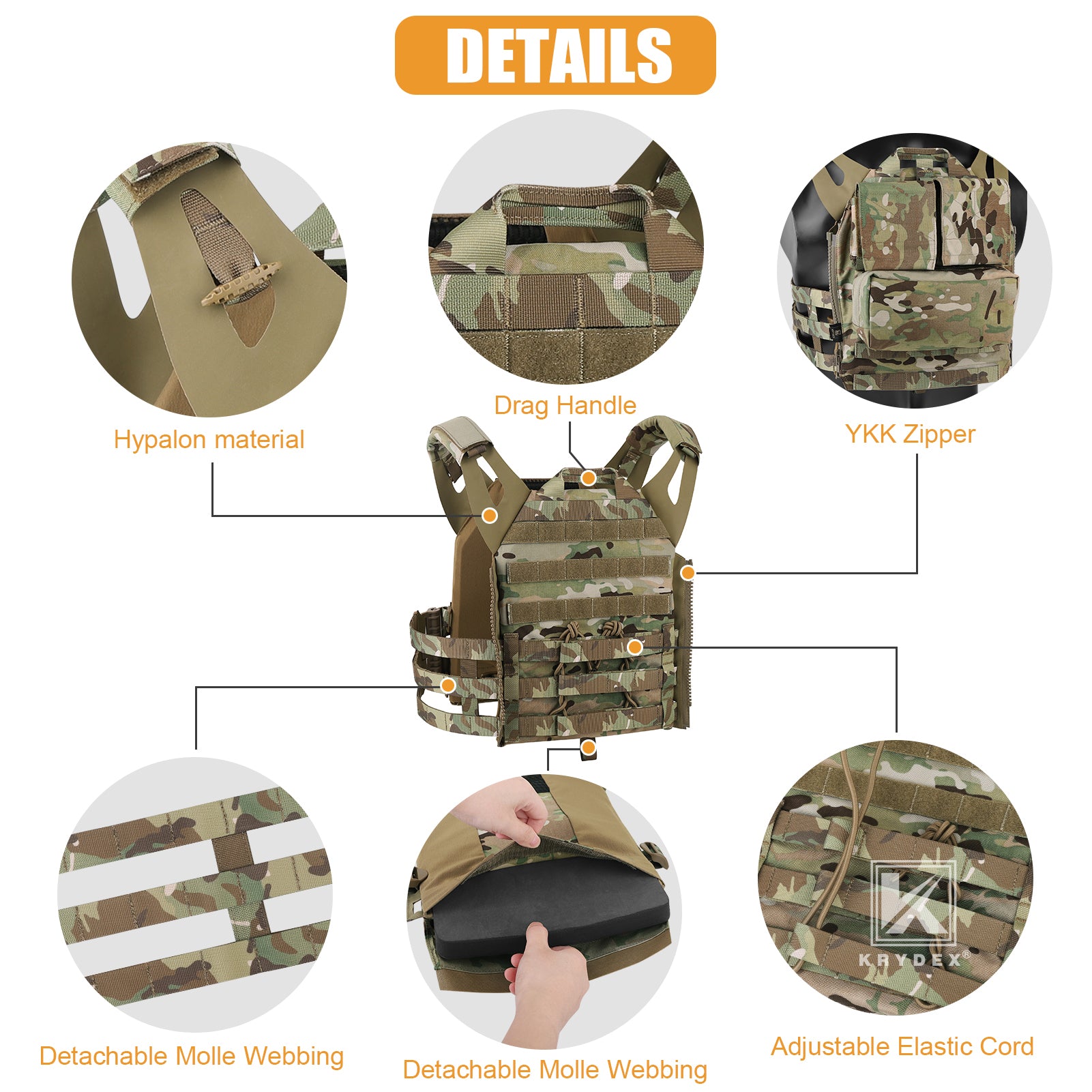 * Fit Plate size: 10” x 12” * Color: MC, BK, CB, RG. Package: * Krydex Tactical JPC 2.0 Plate Carrier Quick Release *1