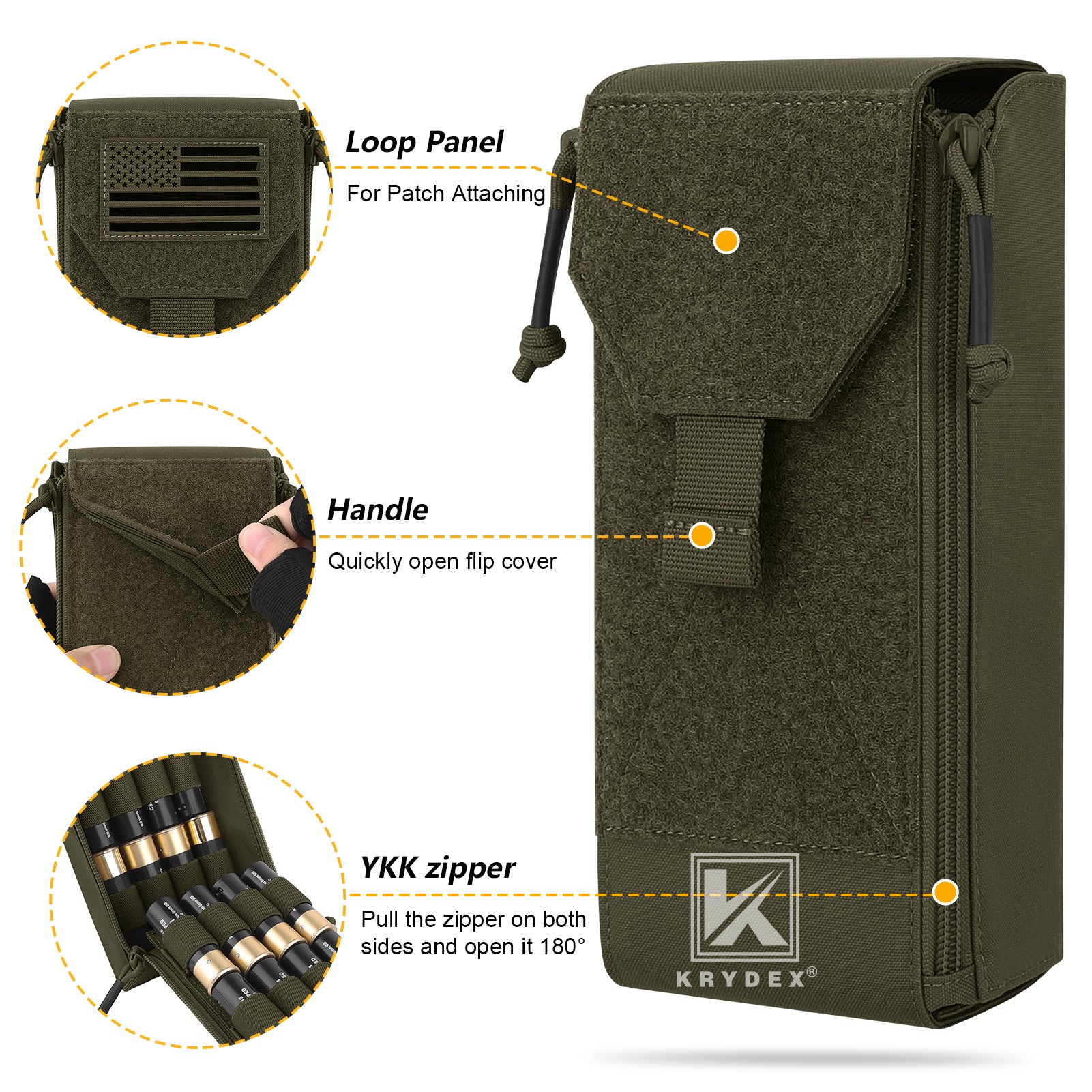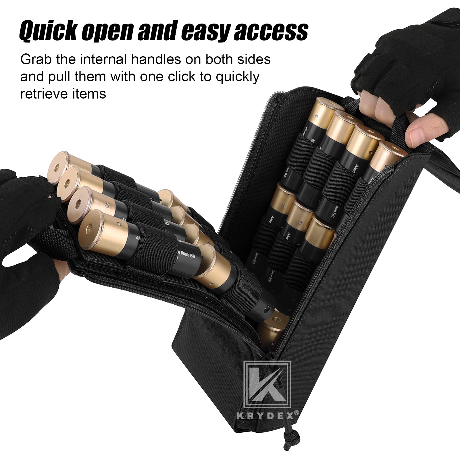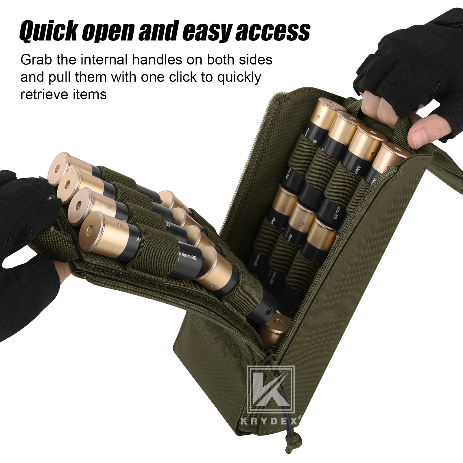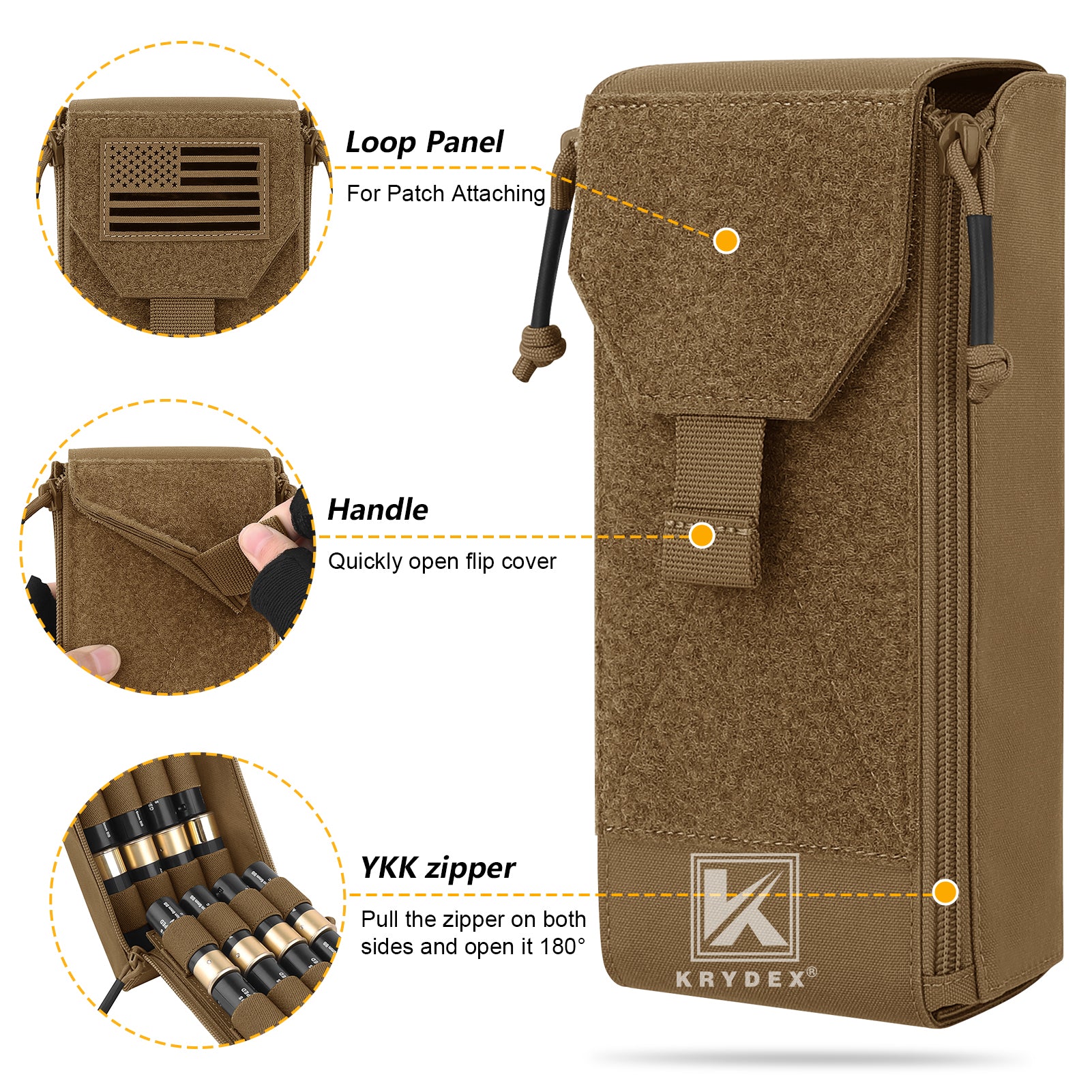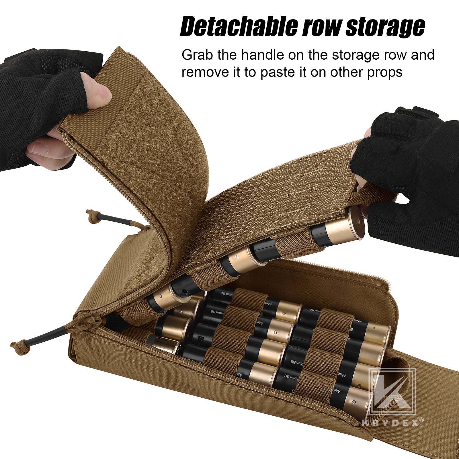 * MOLLE & 2” Belt compatible. * Color: MC, BK, CB, RG. Package Contents: * Krydex Tactical Rip Away Shot Shell Holder * 1